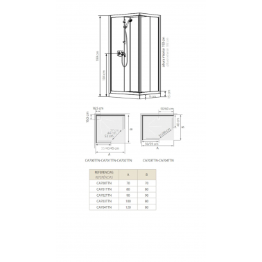 Estão equipados com 2 portas de correr em vidro de segurança, painéis com fundo em vidro e torneiras termostáticas. Os rolamentos inferiores da porta podem ser desencaixados para facilitar a limpeza. De instalação reversível, são montados em poucos minutos graças a um engenhoso sistema de ancoragem do painel.