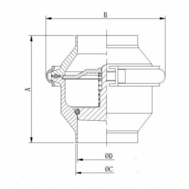 Válvula retención extremos soldar. Cuerpo en acero inoxidable AISI 304. Cierre EPDM - junta silicona. Extremos soldar. Pulido sanitario. Presión máxima de trabajo: 10 bar. Temperatura máxima 120ºC.