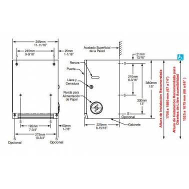 Distribuidor de toalha de papel em rolo Bobrick parede da Bobrick Classic Series. É feito de aço inoxidável com acabamento acetinado. É equipado com uma trava de segurança para aumentar a segurança. Dispensa toalhas de papel com 305 mm de comprimento. Permite rolos não perfurados de 205 mm de largura e até 205 mm de diâmetro e ainda possui sistema de transmissão automática para rolos de até 90 mm de diâmetro. Suas dimensões são 295 mm de largura, 380 mm de altura e projeção de 225 mm na superfície da parede.