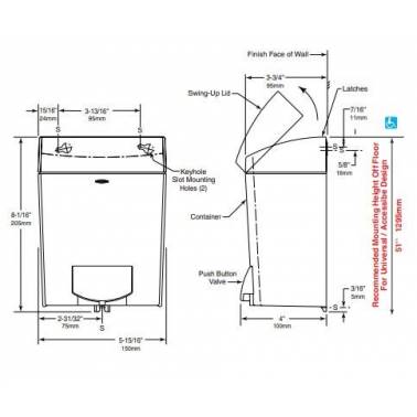 Distribuidor de sabão para montagem na parede feito de poliamida cinza resistente a impactos Bobrick . A válvula dispensa sabonetes para todos os fins para fácil manutenção. A tampa possui um dispositivo de travamento oculto. Suas dimensões são 150x205mm