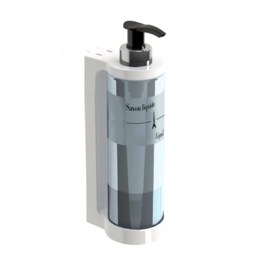 Distribuidor de sabonete de parede em ABS branco JVD. Disponível em preto ou branco. Ecológico e econômico com tanque reutilizável. Fornecido com três rótulos (Sabonete, Shampoo e Loção). É bloqueado com uma chave fornecida com o dispensador. Possui capacidade de 300ml e vazão de 1ml por prensa.