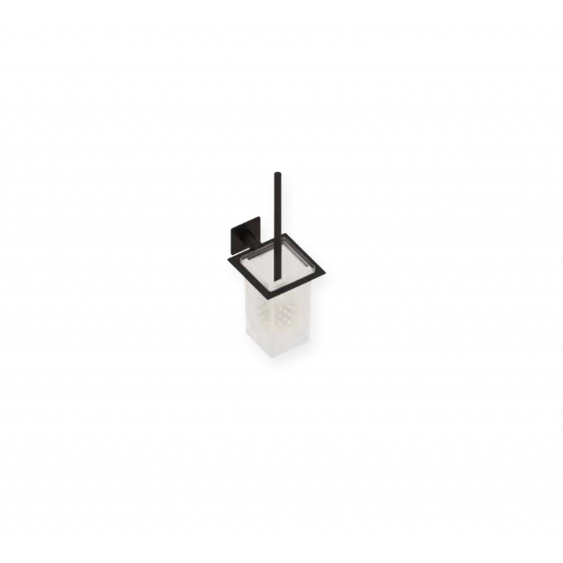 Escobillero PRAGA adhesivo en acabado negro mate, elegante y funcional. Con dimensiones de 11,5x35x13 cm, combina practicidad y estilo moderno, instalándose sin necesidad de perforaciones.