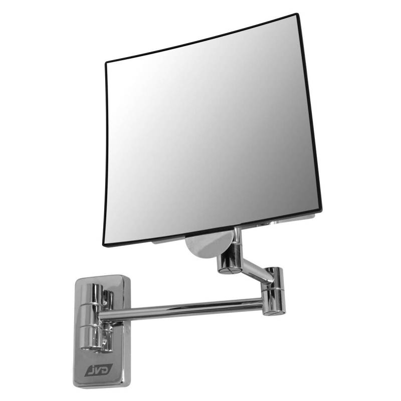 Espelho de aumento sem luz, modelo quadrado Eclips acabamento preto com braço tubular de latão cromado JVD