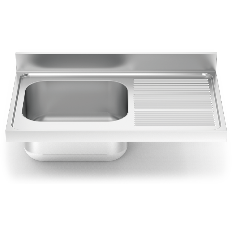 Lavatório com escorredor direito em aço inoxidável 1400x700 mm. As bandejas têm 1 mm de espessura e acabamento em cetim.
