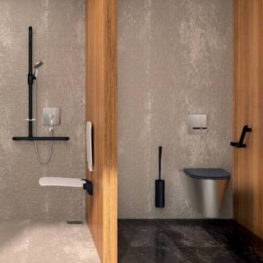 O suporte para manopla de chuveiro Delabie Be-Line preto fosco é uma solução prática e elegante para pessoas com mobilidade reduzida (PMR). Este suporte giratório permite ajustar a altura da manopla de chuveiro de forma fácil e conveniente. Com design ergonômico, ele desliza pressionando a manopla ou puxando a mangueira. Compatível com a barra de apoio Be-Line®, oferece instalação simples e segura.