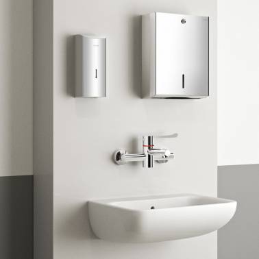O misturador sequencial termostático Delabie Securitherm touchless, EE, de 150 mm, com bica Bioclip removível, é uma escolha inovadora para ambientes de saúde. Este misturador termostático sequencial garante uma operação eficiente e segura, abrindo e fechando com água fria para evitar o risco de interferência entre a água quente e fria. Equipado com bica Bioclip removível, este misturador é fácil de limpar e desinfetar, contribuindo para uma higiene ideal no ambiente de saúde. Ele também possui tecnologia touchless, tornando-o ideal para reduzir a propagação de germes e bactérias em hospitais, clínicas e outros ambientes semelhantes. Com um design padrão e uma bica de 150 mm, este misturador adapta-se facilmente à maioria das instalações.