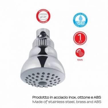 Desfrute de uma experiência de banho revitalizante com o spray de banho cromado 1 Jet Easy 00. Este pulverizador de chuveiro oferece um único tipo de jato para uma sensação de frescor e relaxamento em cada banho. Fabricado em aço inoxidável, latão e ABS, garante durabilidade e resistência à corrosão. A sua ligação universal de 1/2" facilita a instalação na maioria dos sistemas de duche padrão. Com um diâmetro de 7 cm, proporciona uma cobertura ideal para uma experiência de duche rejuvenescedora. Mergulhe no conforto e no luxo com o Chuveiro. Chuveiro 1 Jet Easy 00 cromo.