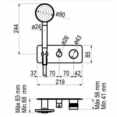Transforma tu espacio de baño con el Grifo de ducha mural 2 vías Zoom cromo. Este grifo mural está fabricado en latón con un elegante acabado cromado, níquel, cromo negro cepillado u oro cepillado, ofreciendo durabilidad y estilo. Con un caudal de 19,1 l/min a 3 bar, proporciona un flujo de agua potente y constante. Equipado con una entrada G1/2 hembra y un cartucho sellado con discos cerámicos de 35 mm, asegura un funcionamiento suave y fiable. Su accionamiento mediante monomando giratorio permite un control preciso del caudal y la temperatura, con una temperatura máxima admisible de 70ºC para los materiales. Viene completo con accesorios de ducha para una experiencia integral y cómoda.