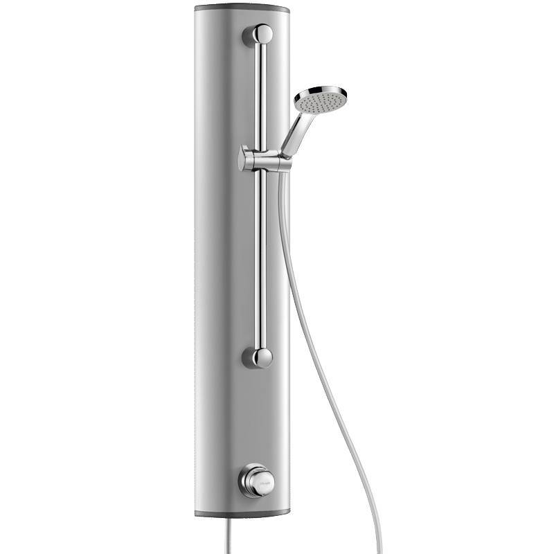 Painel de chuveiro de alumínio Tempomix, alimentação superior com torneira misturadora e manopla de chuveiro Delabie