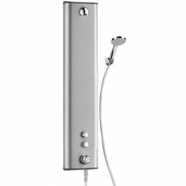 O painel de chuveiro termostático de aço inoxidável Delabie Securitherm com dois controles é uma solução eficiente e funcional para ambientes comerciais e públicos. Feito de aço inoxidável, este painel garante resistência à corrosão e durabilidade em ambientes úmidos. Projetado para instalação na parede, ele se integra perfeitamente a qualquer box de chuveiro. O fornecimento oculto através de mangueiras flexíveis M1/2" proporciona um visual limpo e organizado. Equipado com uma torneira misturadora termostática SECURITHERM, permite regular a temperatura da água fria até 38°C, com um primeiro limitador de temperatura a 38°C e um segundo limitador a 41°C, garantindo um duche seguro e confortável. Além disso, possui proteção anti-queimaduras, que corta automaticamente o fluxo de água em caso de corte repentino de água fria, e uma função anti-chuveiro frio, que desliga automaticamente em caso de corte repentino de água quente, permitindo um choque térmico controlado. O painel inclui um chuveiro ROUND cromado, antivandalismo e anticalcário, com regulação automática da vazão para 6 l/min a 3 bar, bem como um chuveiro de mão com mangueira removível através de um conector rápido STOP e suporte de parede incluídos, proporcionando versatilidade e conforto durante o duche. As torneiras temporizadas ~ com toque suave controlam o chuveiro ROUND, enquanto a torneira não temporizada controla o chuveiro. Portátil. Com fixações ocultas, filtros integrados e válvulas antirretorno, este painel foi projetado para garantir uma operação segura e sem problemas. Adaptado para pessoas com mobilidade reduzida (PMR), oferece acessibilidade e conforto para usuários de todas as idades e habilidades.
