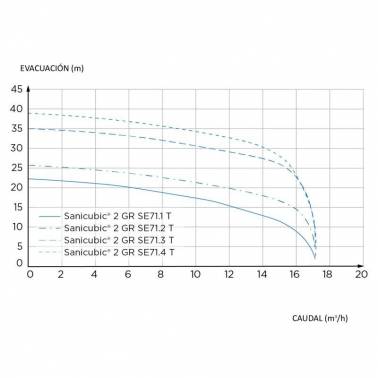Estación de bombeo general con dos bombas trituradoras trifásicas 2x3200W modelo Sanicubic 2 R marca SFA. Disponible también con dos bombas trituradoras de 2x1700W. Esta estación de bombeo permite evacuar aguas hasta 39 metros de altura. El caudal máximo alcanzado es de 17m³/h.