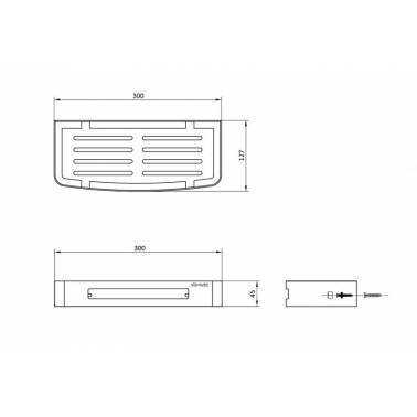 Saboneteira em aço inoxidável com acabamento brilhante Genwec. Saboneteira retangular para instalar na parede. Elementos de fixação estão incluídos. Resistente a corrosão. Suas dimensões são 45 mm de altura, 300 mm de largura e 127 mm de profundidade
