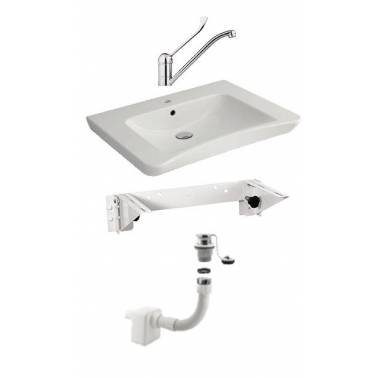 Kit de lavatório ergonômico com apoio reclinável manual, sifão e torneira com cabo clínico Nofer