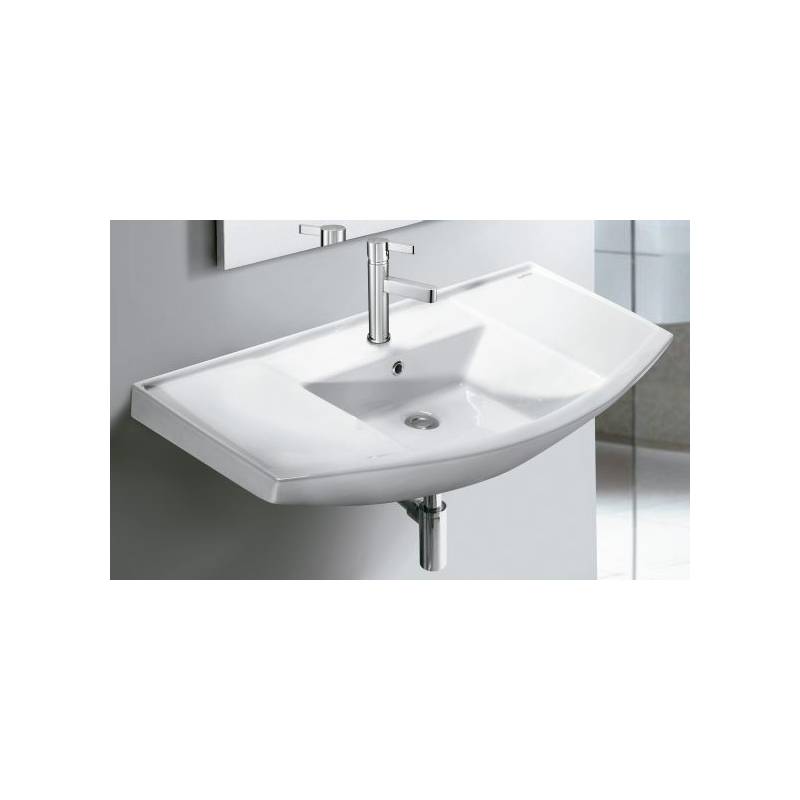 Lavatório suspenso semi-embutido com extravasamento. Medidas: 800x500x180 mm.