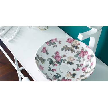 Lavatório redondo de bancada em bruto com decoração A, modelo New Lys Bathco