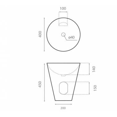 Lavatório de bancada em aço com acabamento brilhante no interior e branco no exterior, modelo Pedraza. Não tem transbordamento. Disponível em três acabamentos diferentes, brilho, brilho branco ou brilho ouro rosa. Suas dimensões são 400 mm de diâmetro, 450 mm de altura e a base é de 200 mm