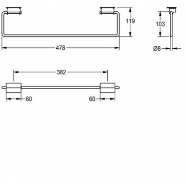Toalheiro para lavatório coletivo em aço cromado níquel 478mm com acabamento acetinado modelo SATURN marca Franke. Barra de toalha para lavatórios coletivos das séries ECO400CS, BX400CNS e ECN400CNS. Tem uma espessura de material de Ø 8 mm, para montagem sob o peitoral frontal, barra flexível e pode ser montado posteriormente, é necessário um conjunto para cada bacia, inclui material de fixação.