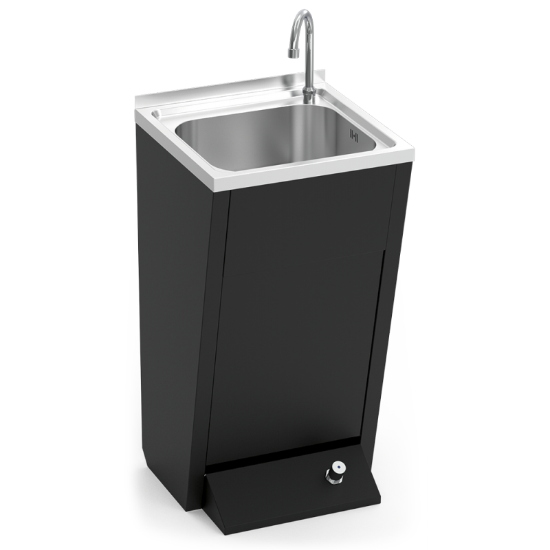 Este lavamanos autónomo de Fricosmos, fabricado en acero inoxidable AISI 304, ofrece una solución higiénica y eficiente para eventos al aire libre y lugares sin instalaciones de agua. Equipado con un único pulsador, bombea agua fría desde un depósito de 15 litros, expulsándola a través del caño con un caudal de aproximadamente 1,5 l/min. No requiere toma de agua ni desagüe, pero sí conexión eléctrica. Su diseño incluye una papelera integrada en la parte frontal, ruedas traseras y un asa de arrastre para facilitar su transporte. La cubeta es de gran dimensión y resistencia, con aristas redondeadas y reborde anti-derrames. El sistema anti-olores asegura un uso limpio y cómodo, mientras que el armario cerrado por tres lados, con estante interior y puerta frontal, proporciona almacenamiento adicional y facilita el mantenimiento.