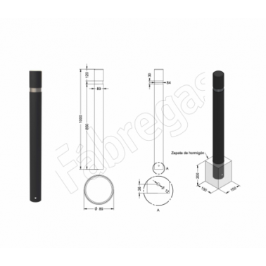 Pilona Barcelona 92 con tubo metálico de acero y argolla de acero inoxidable negro oxirón marca Fábregas