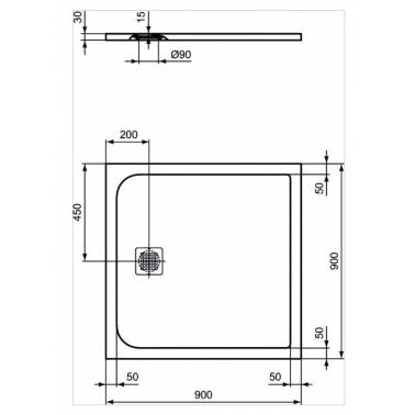 Base para ducha de resina em acabamento cinza 90x90 Ultraflat S Ideal Standard