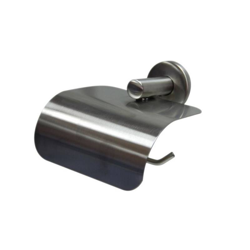 Suporte para papel higiênico com saia dianteira fixa feito de aço inoxidável Presto com acabamento acetinado
