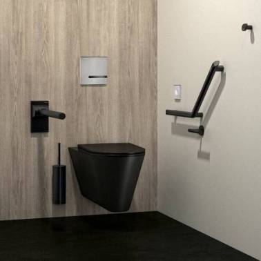Suporte para papel higiênico ou papel higiênico extra Delabie em aço inoxidável preto fosco. Este suporte para papel higiênico ou papel higiênico extra foi projetado para versatilidade de instalação, permitindo sua instalação horizontal para uso padrão ou vertical para uso extra. Fabricado em aço inoxidável 304 com revestimento epóxi preto fosco, oferece durabilidade e resistência à corrosão. Com tubo de Ø20 e fixações ocultas, é uma opção moderna e funcional para banheiros comerciais ou residenciais.