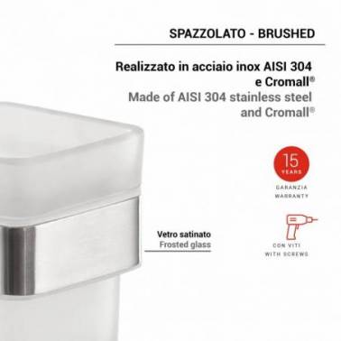 O porta-escovas Maui com acabamento escovado é um acessório essencial para o seu banheiro. Fabricado em aço inoxidável AISI 304 e Cromall, este porta-escovas garante durabilidade e resistência à corrosão. Seu design elegante e funcional inclui vidro acetinado que confere um toque de sofisticação ao seu espaço de banheiro.