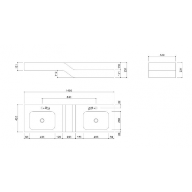 Lavabo consola de doble altura de resina acrílica con soportes de fijación 139,5x42x22cm borde rojo anaranjado