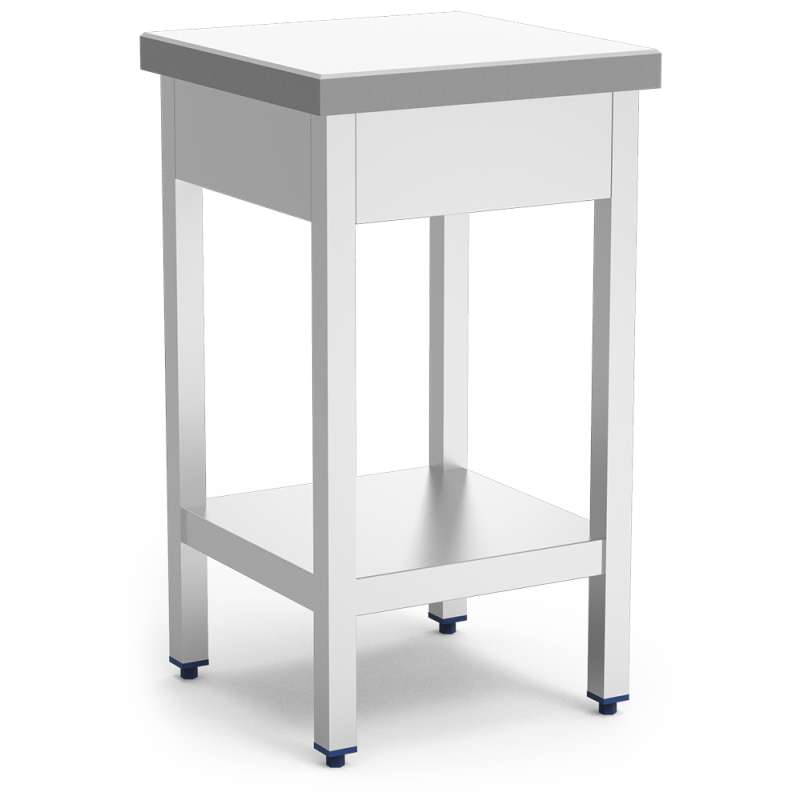 Bloco de corte em fibra com lastro de 450x450x900 mm em branco. Polietileno de qualidade P-500, 50 mm de espessura. Seu grande peso evitará muito os sons e vibrações de quem está batendo, favorecendo sua estabilidade. Facilita a limpeza da fibra e do suporte, pois pode ser desmontado sem a necessidade de retirar um único parafuso. Fabricado com estrutura em tubo de aço inoxidável, prateleiras insonorizadas em chapa de aço inoxidável e sem madeira colada no interior. Pés ajustáveis para maior estabilidade e conforto em qualquer tipo de terreno