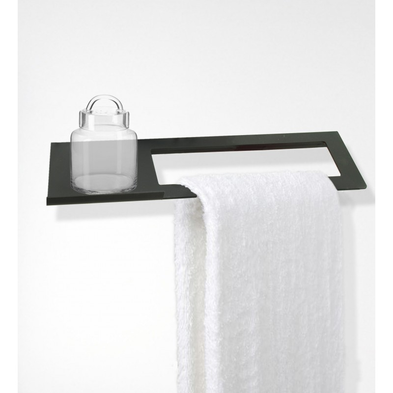 Toallero corto con bandeja Nina en acero blanco mate. Práctico y moderno, ideal para mantener el orden en el baño. MEDIDAS: 310x100x22 mm.