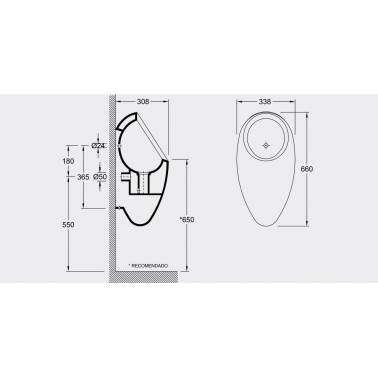 Urinario suspendido con alimentación trasera modelo Egg Valadares. Urinario de pared suspendido de color blanco. Disponible en tres acabados diferentes: acabado blanco, negro o de colores especiales. Los colores especiales son azul, pergamon, verde, cereza, azul petróleo, marfil y pizarra. Entrada de agua trasera. Sus dimensiones son 34x31x66cm. Garantía de 20 años.